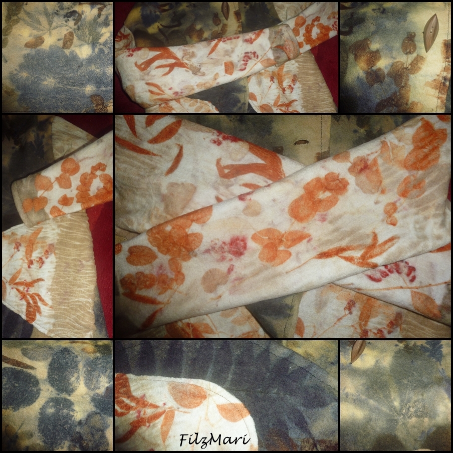 Hab mal wieder etwas mit Ecoprint experimentiert. Die Blattformen auf den Seidenstoffen (Pongee und Bourette) haben immer schon etwas Herbstliches. Vielleicht weil sich die Farben eher zurückhalten.